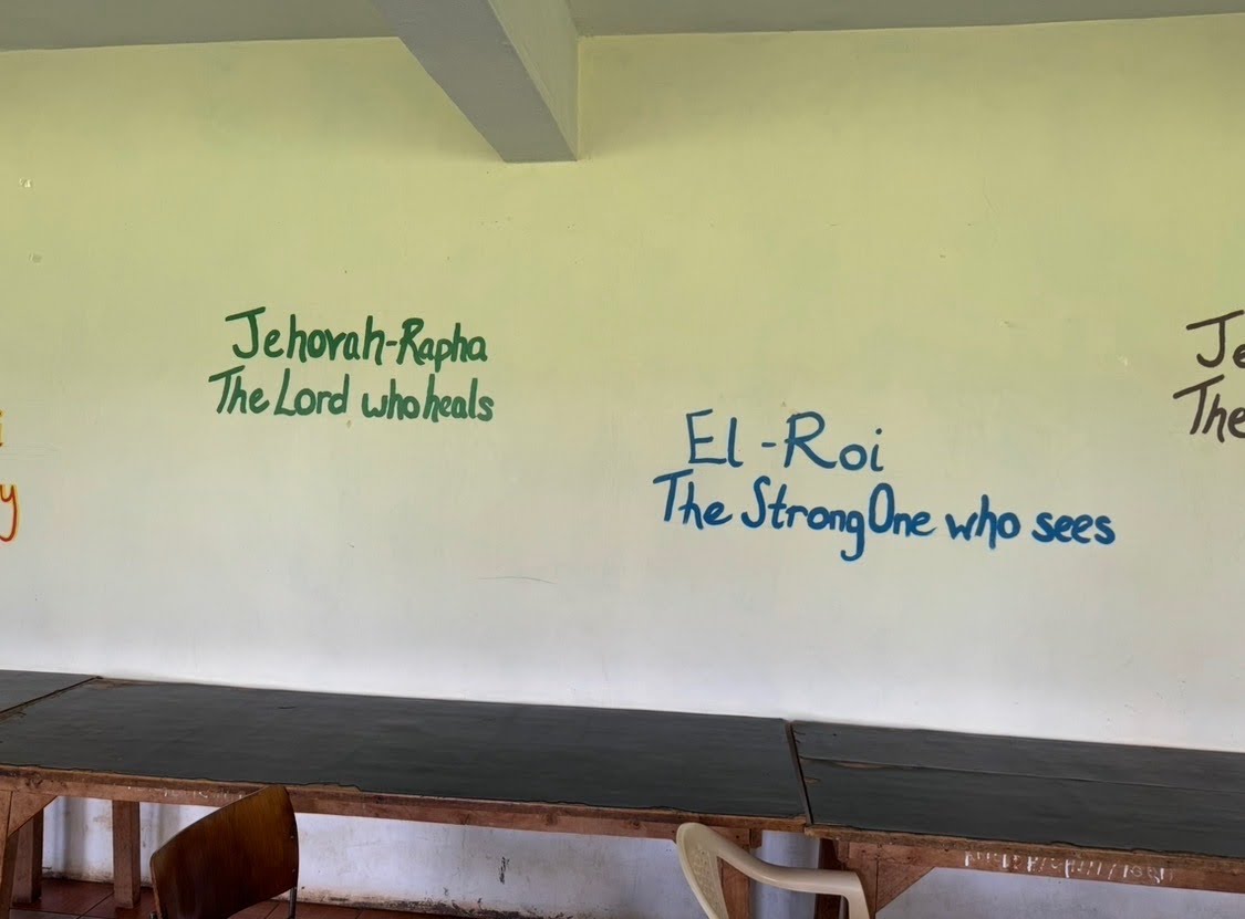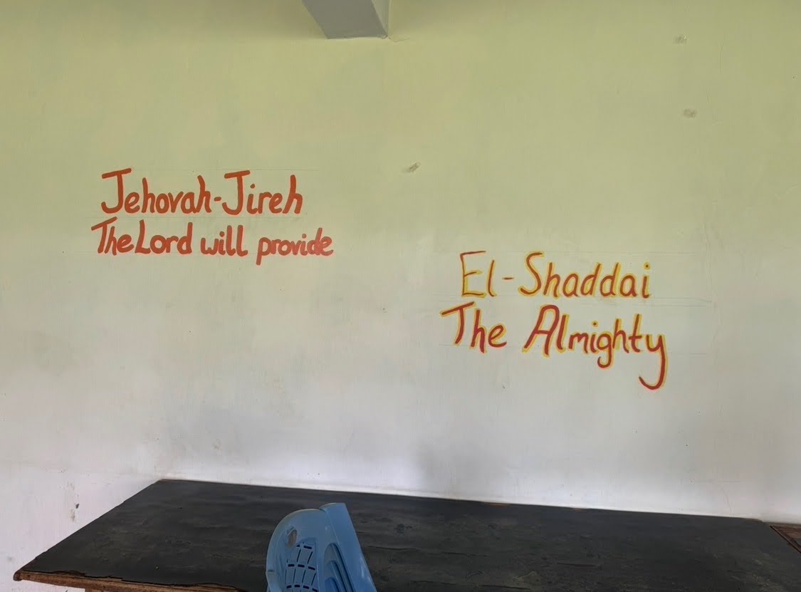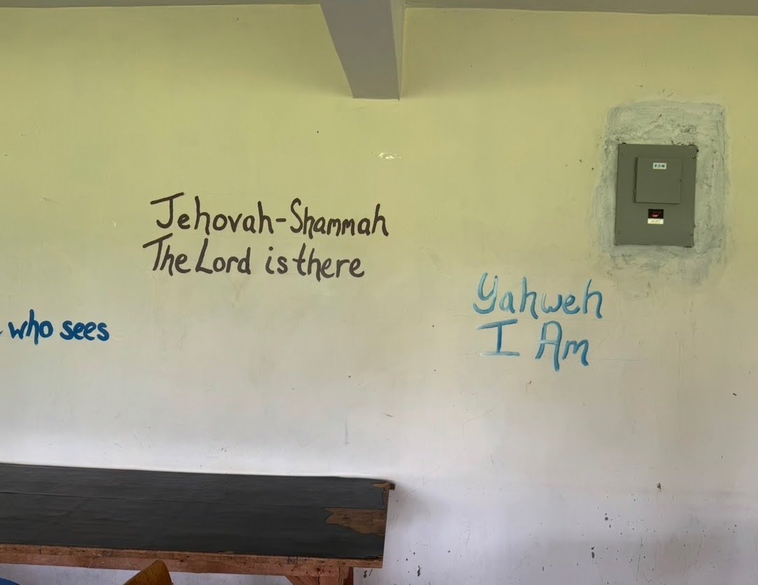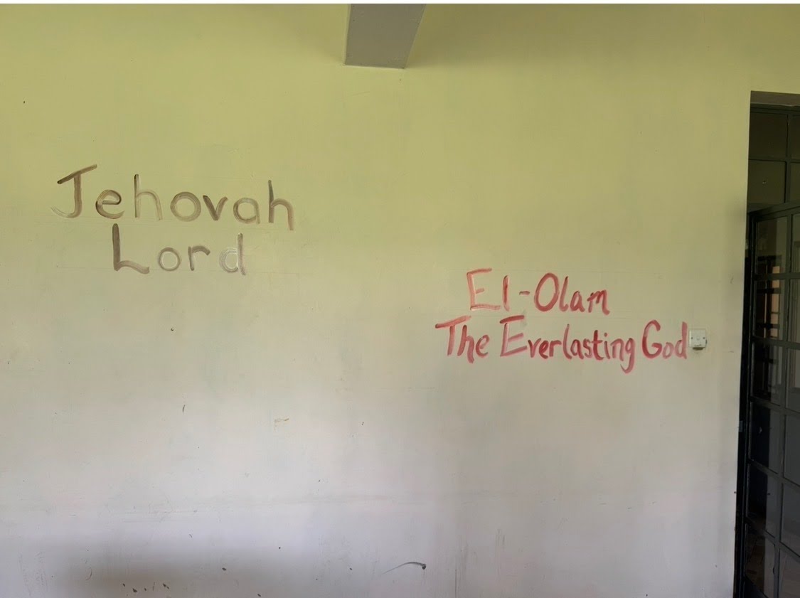 I have attached pictures of some the names of God. These were written on the chapel walls when the building was built.u